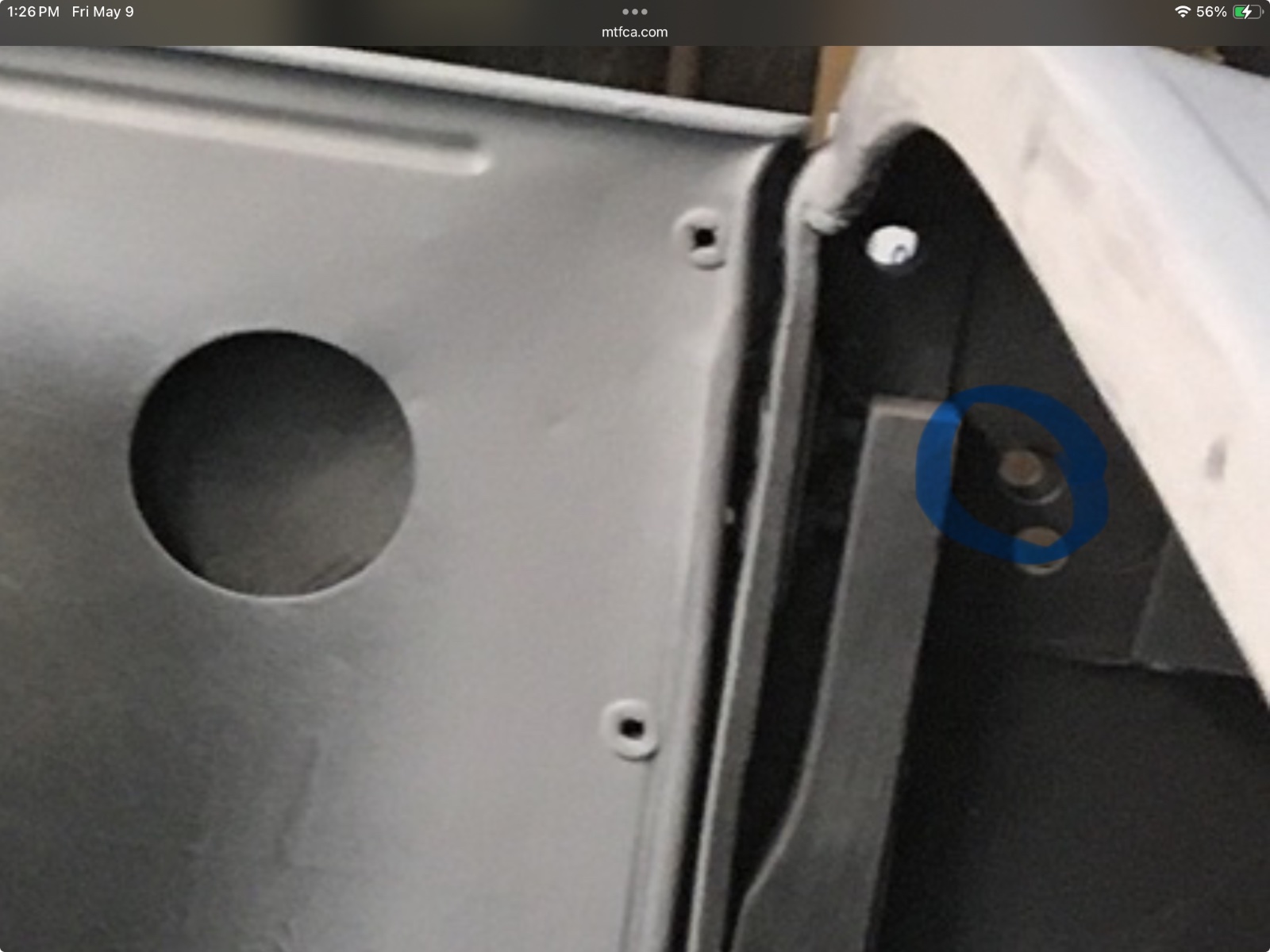 I don’t have photos. On my ‘26 roadster, there were a couple of holes on the latch pillar that were smaller to accept flathead wood screws. I secured the wood blocks there. The screws are eventually covered by the hip panel.