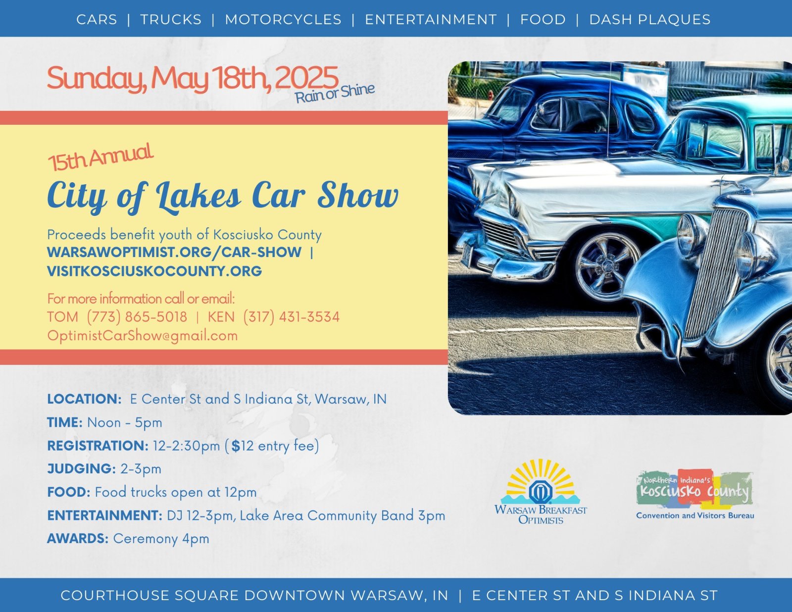Wanted to invite everyone to a great car show this Sunday from noon to 5 p.m. in downtown Warsaw Indiana. The show is a well attended charity show put on by the Optomist Club and they are specifically spotlighting