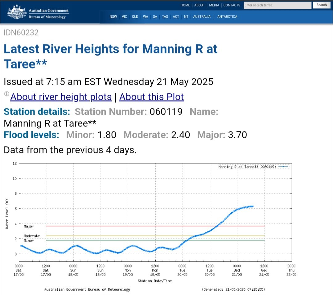 1929 flood record annihilated! Manning River at 6.3 metres! This is unprecedented.
