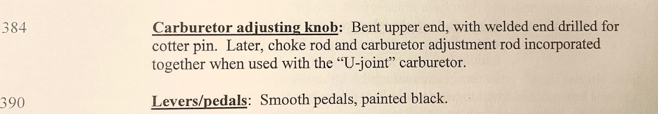The judging guidelines says the carburetor adjustment was changed in 1925 to a bent rod design. What is that supposed to mean? Here is what I know. Sometime in mid 1925 the carburetor adjusting rod was changed from 3/16" to 1/4". At that time the 1926 carburetor adjusting rod was changed, but when? The knob is new, the rod is new, AND, the dashboard was changed to use the new style adjusting knob. There is now a deeper indentation in the dashboard for this knob. When exactly did all this happen?