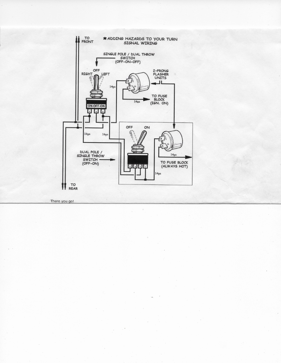 Here you go folks! Simple, works Great, the hazards are optional.
