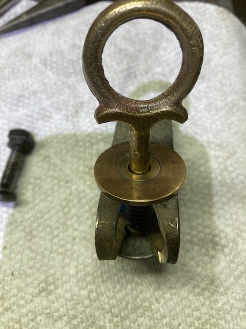 I do not know what others do or have done to install the the original hold downs for the hood. I should have done it while the engine was out but I am new to the T community. Below is a tool I made that holds the spring in compression such that the installation can be accomplished readily with just 2 hands. My 12 T has the later hogshead with the starter and I was able to install the one alongside the starter as well easily. After installing the cotter pin yank out the tool. Note that I just taped the lower washer (blue tape) to the lowest surface of the tool such that the tape is torn loose when you yank the tool out. Obviously the pictures show it with the pin installed. After holding the tool with the spring and bottom washer in the tool under the hood former positioned under the hole you insert the bronze piece. I used a small clamp to hold the tool up under the frame upper flange and installed the cotter from under the car, It was very easy with the tool! I can't seem to delete the duplicated 2 photos.