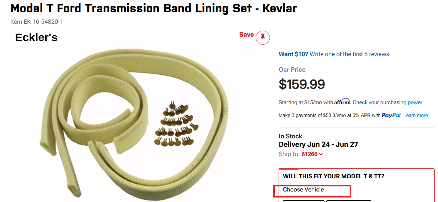 Not knowing how many folks make Kevlar band lining besides yourself, does this mean that we're about to face a shortage of Kevlar bands?OldFord wrote: ↑Sat Jun 21, 2025 8:12 amI have been supplying woven kevlar transmission bands since the early 80's, but have recently removed my ad from the Vintage Ford. Return on investment was getting lower and lower. Since the passing of my Brother, I have just about stopped supplying bands, but have about 50 sets left in inventory. When they are gone, it's done... My price and quality has been the same for the past 5 years and will sell you whatever you need. Narrow set: $119; wide set: $139. Shipping is extra. Contact me via PM or call at 518-755-0986. Satisfaction guaranteed or money returned, no questions asked...