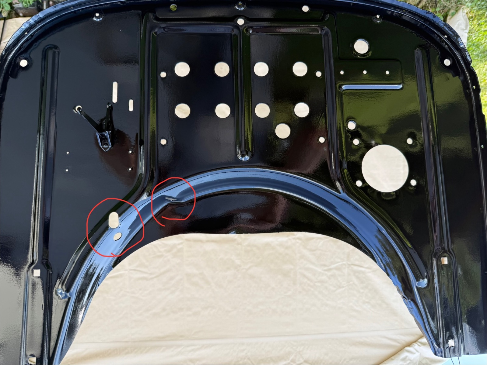 I’m in the process of getting my re-wooded 25 (August 1924) Touring ready for paint and was able to get the firewall done today. I’ve never noticed these holes below the choke bell crank or the one with a shoulder directly below the coil box mounting holes. I don’t remember my January 1924 Roadster having them. What would they have been used for? They look like they came from the factory. I’ve searched the forum and don’t see any reference to them.