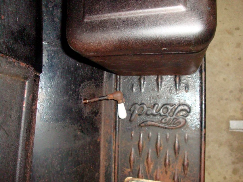 Here is an extension handle for the fuel shut-off valve on an unrestored 1925 coupe here in Minnesota - it utilizes a porcelain gas stove valve handle as shown in the photos.