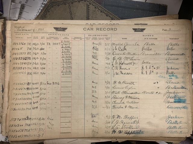 Also have the sales records for this dealership. Tells what car sold for and accessories added. And what was traded in.
