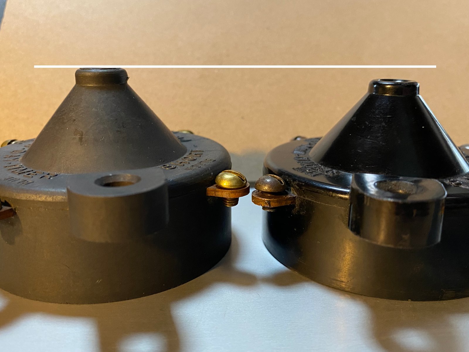 I've also included a photo of an original and "S" cap viewed from the side. See what I mean about the "S" being taller?