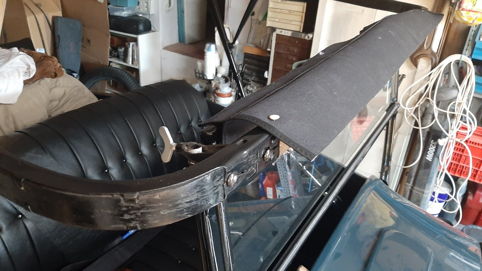 Pieces of used '24 top covering, the body and the rear curtain used to mount on the '23.