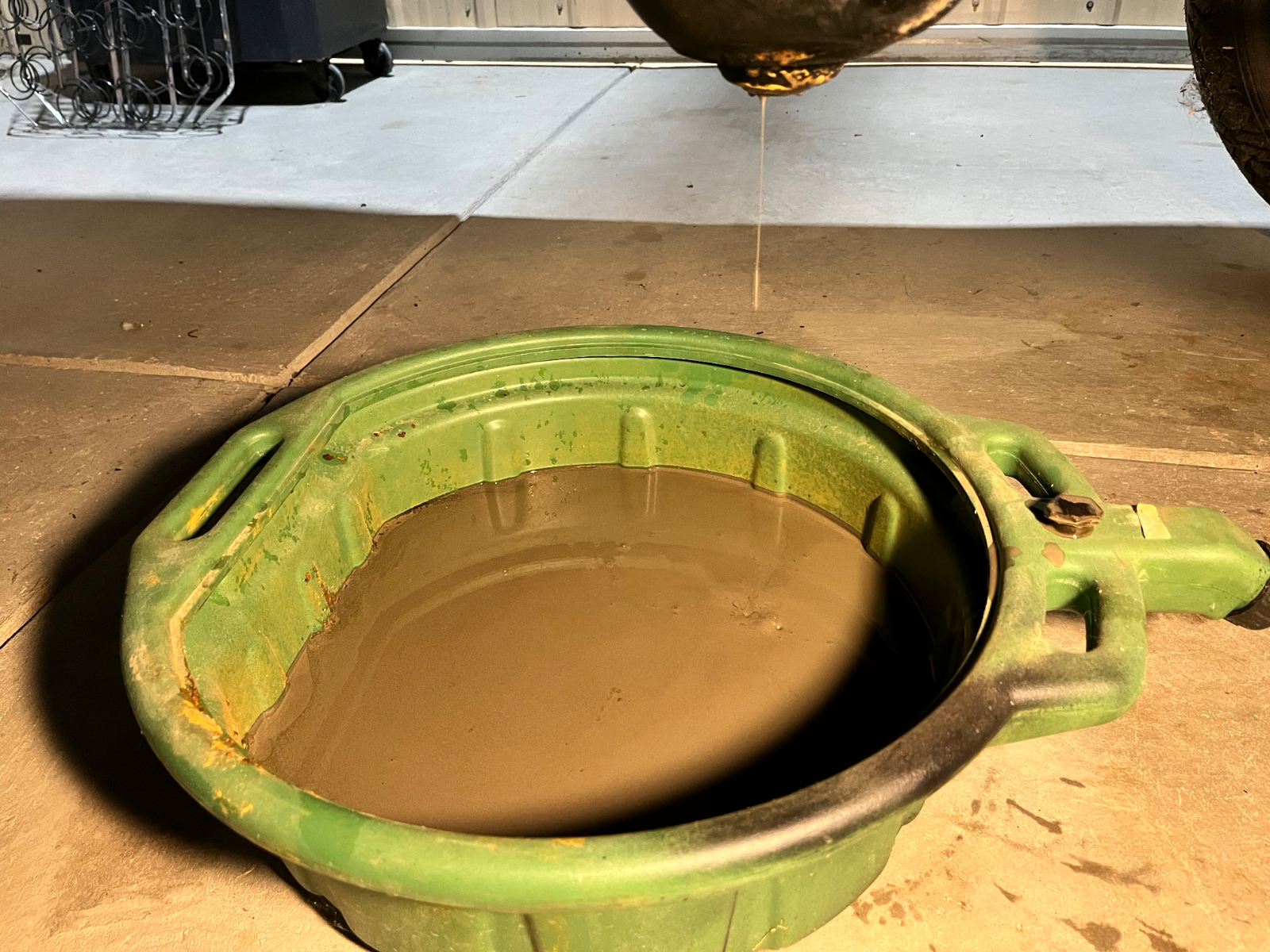 The oil I drained was from the 1980's era and had condensation from the decades of never being changed. I have it stored in a transparent container to see just how much water separates over the next month.... and the Oil I just changed is sitting in the change pan.