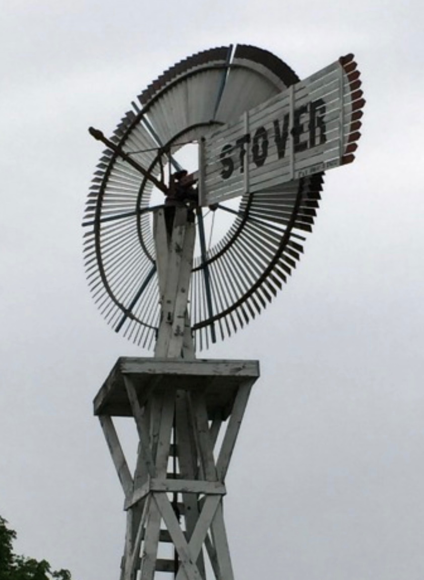 Ford Bryan donated the current Stover windmill that is at the Ford homesite. It is mounted on a shorter tower so it is more visible.