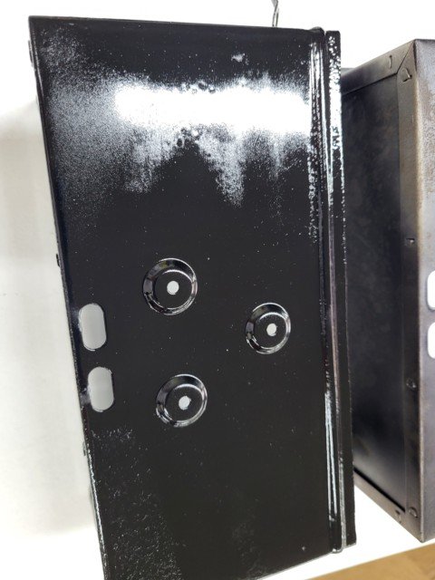 It would be interesting to see if anyone can turn up a coilbox with front mounted switch and the slot for the division rod. Deleting the switch, and the resultant greater flexing of the front panel may be what led to the introduction of the centre division piece.