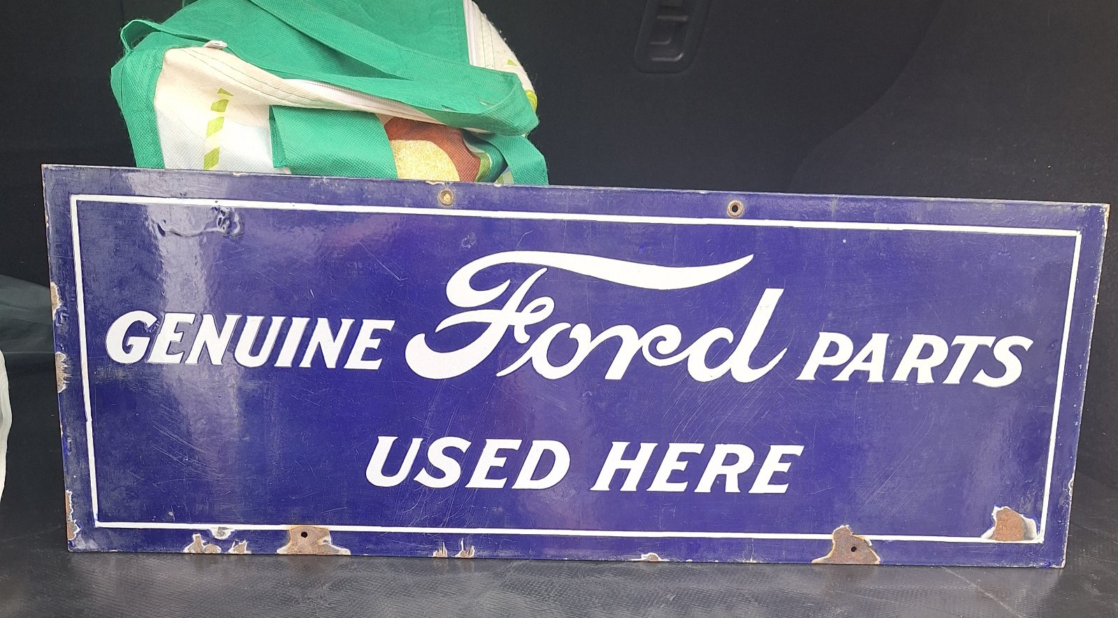 That’s a great find! Looks like a porcelain sign. Was that style used in all Ford dealerships and auto parts houses? Not all that common.
