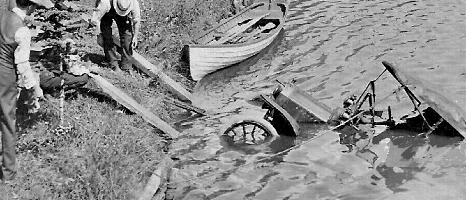 Really neat photos of Model T’s in daily life and not having good brakes to keep running or rolling into the water! I wonder how it got there.