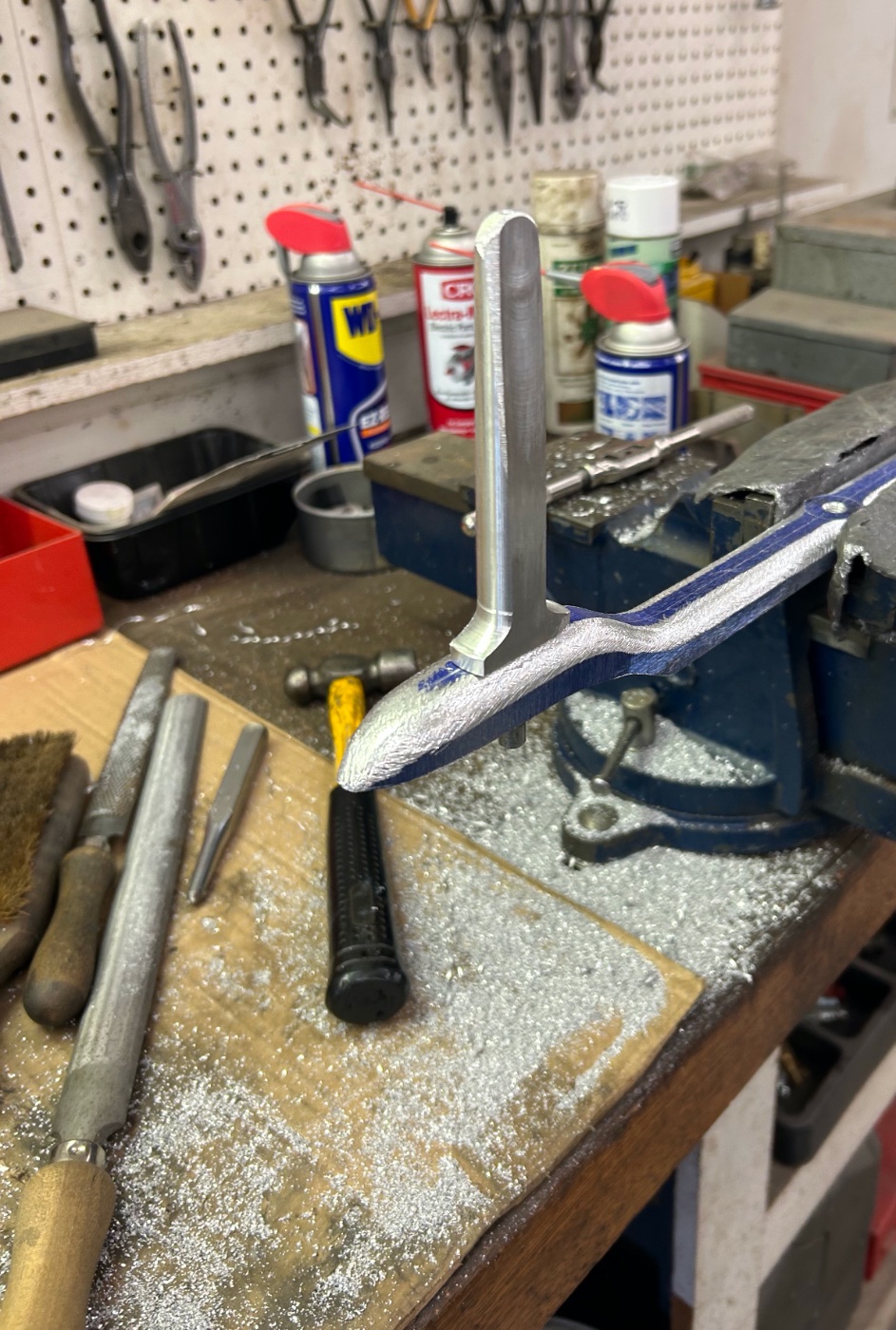 The key in a good job is quality material, T6061 billet, good files and rasp. When ever you are working any soft material use canners wax by means of rubbing your file. They never plug and clean up easy. Watch your pressure when cutting on the strokes. I use lay out dye for a good contrast.