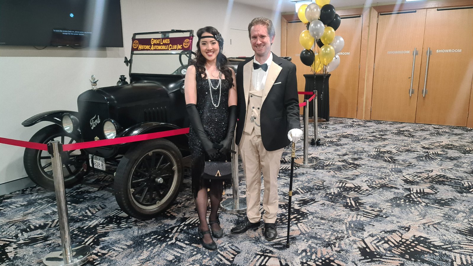 My wonderful girlfriend and I, enjoying ourselves greatly, at the Great Gatsby Gala Ball, raising money for the Great Lakes Womens Shelter — sheltering and giving hope to women and children, the victims of domestic and family violence. My Model T fit in nicely with the 1920s theme of the event.