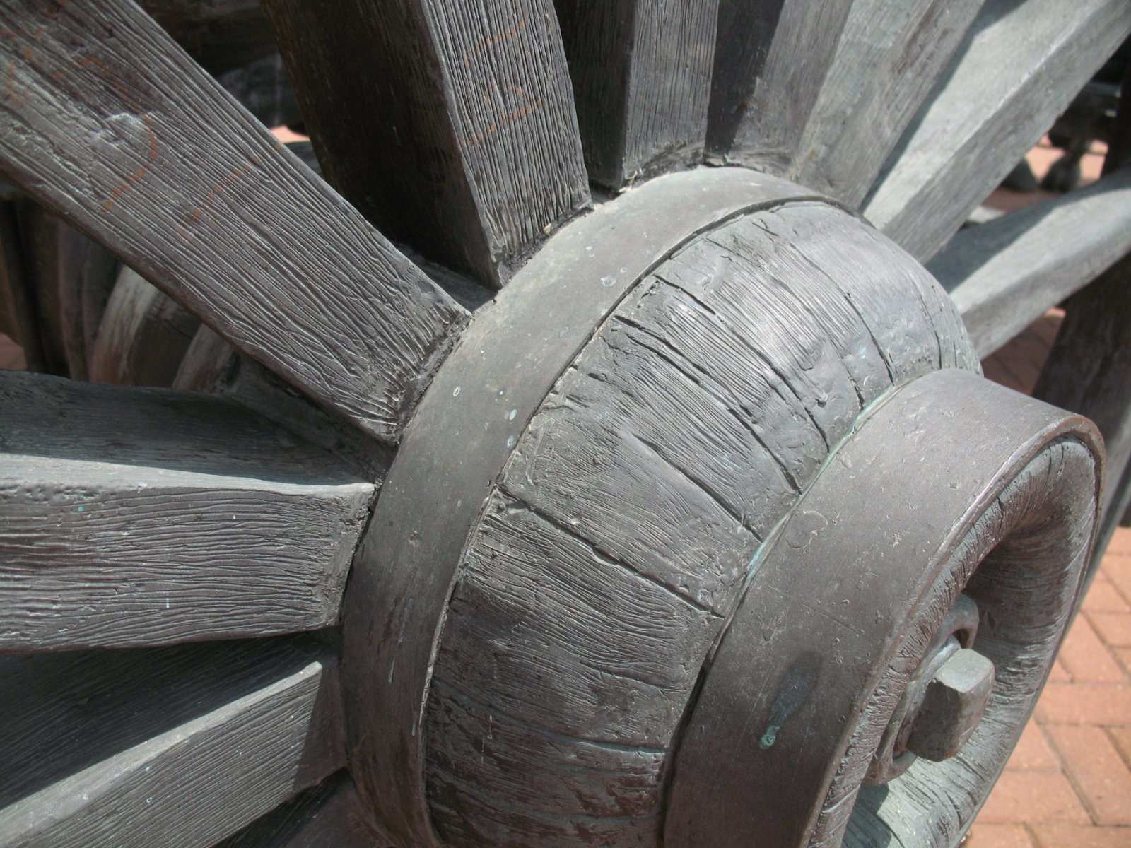Bronze as wood. There's a lot of detail. Wagon wood, ropes, shoe leather, all in bronze.