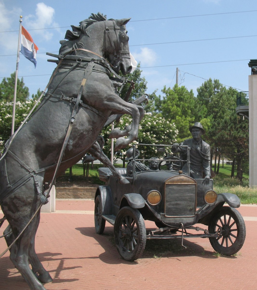 Beautiful sculpture - looking at the year the car represents, you'd have thought horses would have gotten used to having them around by then.