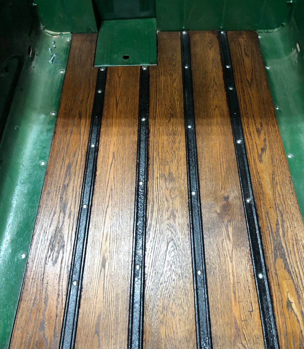 Well looked again and see now the bed wood isn't like stock install. Yours has 6 metal bed strips or cleats. The factory is 4. The curved metal bed sides hold the edges of the outer boards. These use carriage bolts thru the curved bed sides.