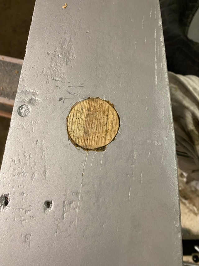 Since it has gotten cold here in the south i repaired a putty filled hole that popped and cracked the epoxy primer. It just goes to show that even modern putties cant handle the cold! Im glad it did this before i painted it!