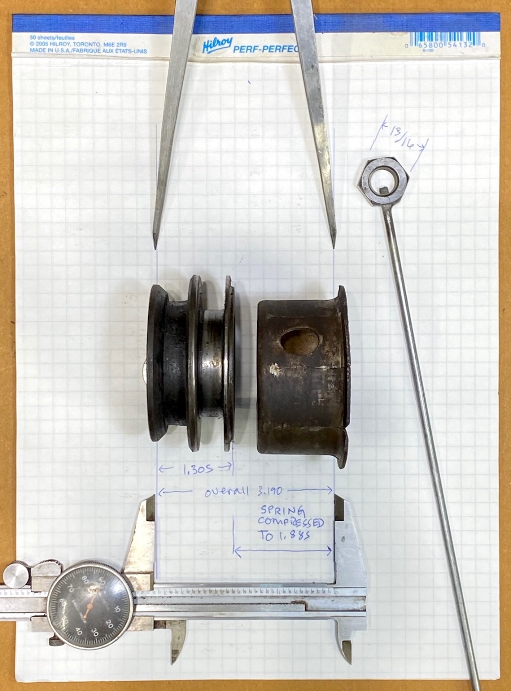BTW, I don't know how people measure spring length directly, it is awfully tight in there. Photos 1 and 2 below show my method of indirect measuring for the spring cup to the finger flange, less the length of the collar to the spring seat.
