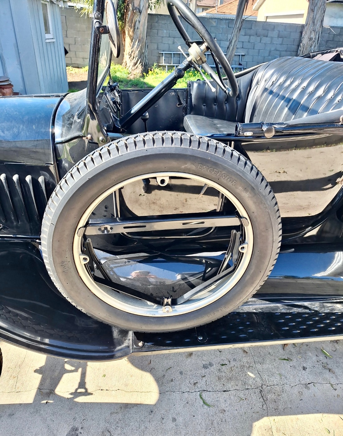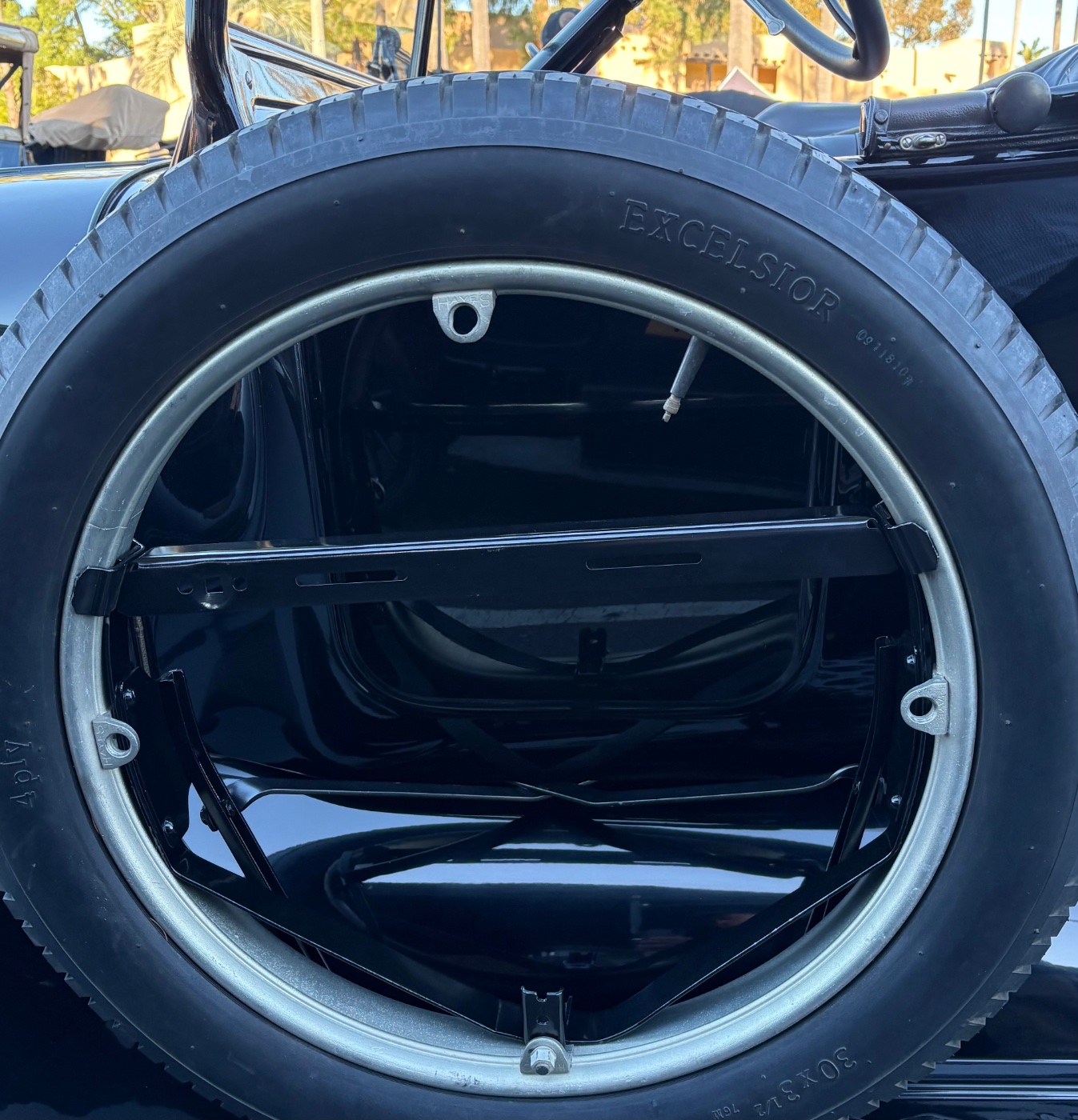 Being an Original Smith car, I hesitate(Not really) to point out that the spare is mounted incorrectly on this carrier.