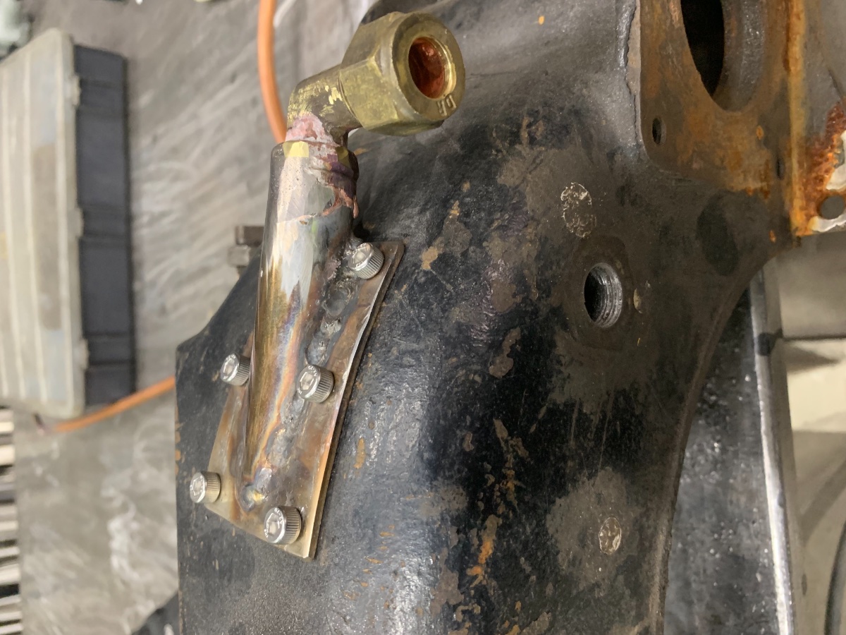 I was just finishing putting the last few bits back on my new engine when I discovered that the outside oil line was dodgy so I looked at my other engines oiler and copied it