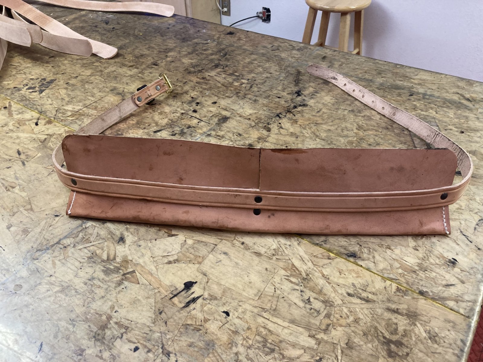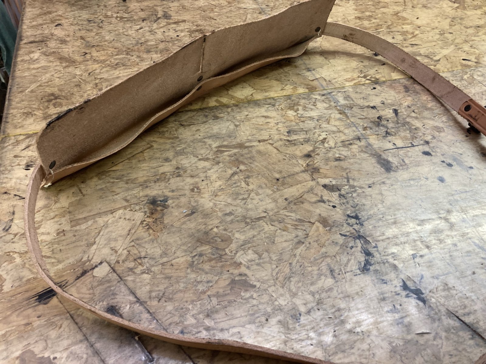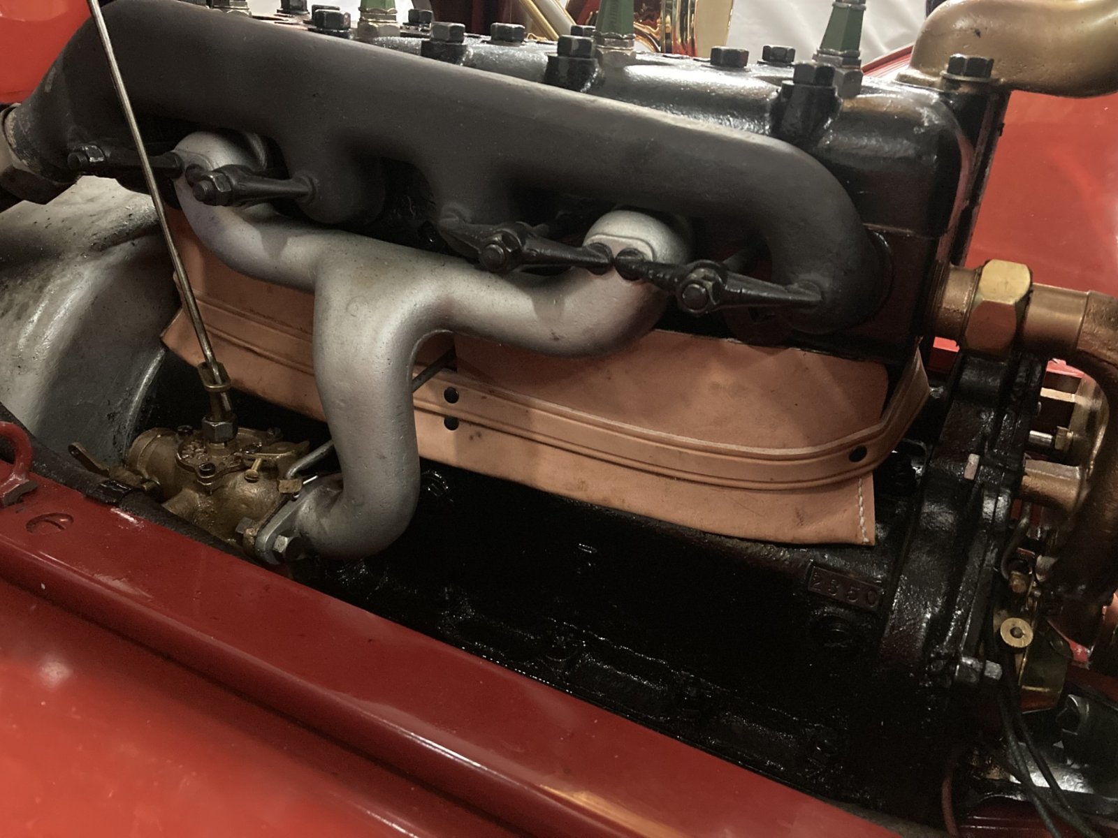 My 1909 Touring has a nasty habit of leaking oil all over the engine bay and undercarriage from the open valve train. Not only is the oil unsightly, but the oil is a pain to clean after just a short drive. To solve the problem, I made a leather valve cover that straps to the engine and the problem is now taken care of!! The leather cover has two folds that hold two absorbant pads, and the pads hold the oil in check. I used a 3/4" leather strap to go around the block to hold the cover in place. The example in the photos will be dyed black tomorrow and will be barely visible when installed. The only bad thing is that I cannot see those eight valves working as the engine is running, but the oil spashing all over the car is a thing of the past! I hope this helps, Russ Furstnow