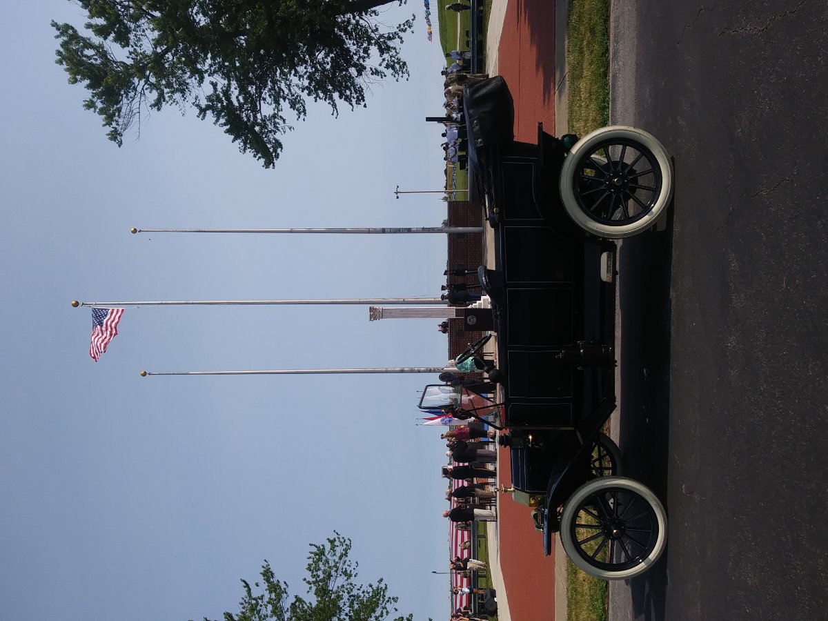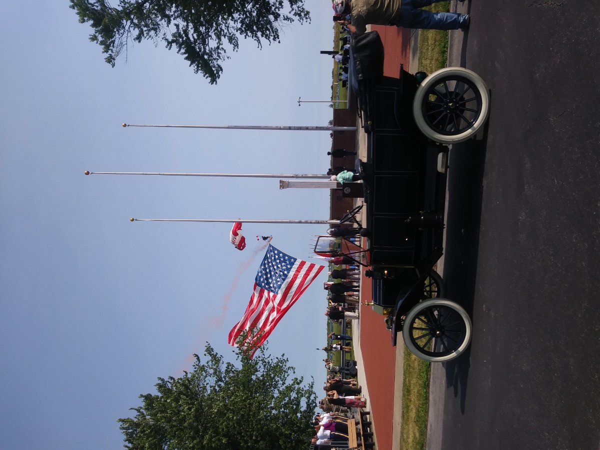Once again our club was invited by the Civilian Marksmanship Program to bring our cars to their impressive "First Shot" ceremony today which marks the opening of the weeklong marksmanship competition at Camp Perry near Oak Harbor Ohio. as always it was a very patriotic inspired program. Signature portion was again having the American flag arrive by parachute. Due to various commitments we were only to have 4 cars for the program of which we gave many rides to spectators afterward. We had my '13, two '26' S and our club Presidents '40 Deluxe Sedan. Afterward we toured to Port Clinton for lunch. The weather was excellent. The lake did its best to flood several roads in the area also! As always when posting from my phone some pics are sideways..click on them and they will show normal. Got a couple out of sequence! Sorry!