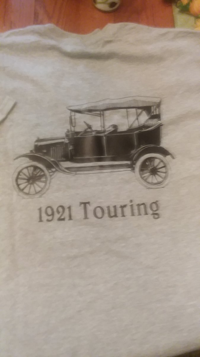 Yes I have and have not found what I want. I might go with the pic I found if my shirt maker can use it. I want the old style Ford script on the front where the pocket would be and a picture of a Touring car with "1921 Model T Touring". I'm thinking black shirts with white picture and lettering? Thanks