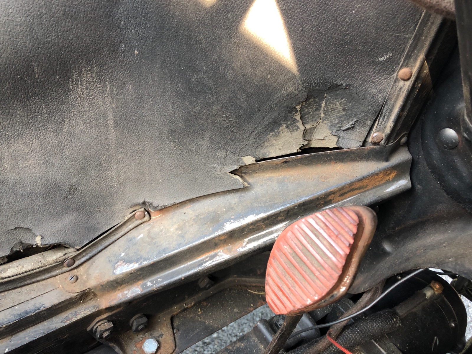 I had taken off my floor boards to chase down an annoying squeak and was surprised to find one side of the clutch adjusting clevis broken off. I don’t remember if this was a reproduction but the original in my “parts department” was different. The broken clevis was a casting and the one I replaced it with was not. Just shows that every so often you need to look over all the exterior moving parts.