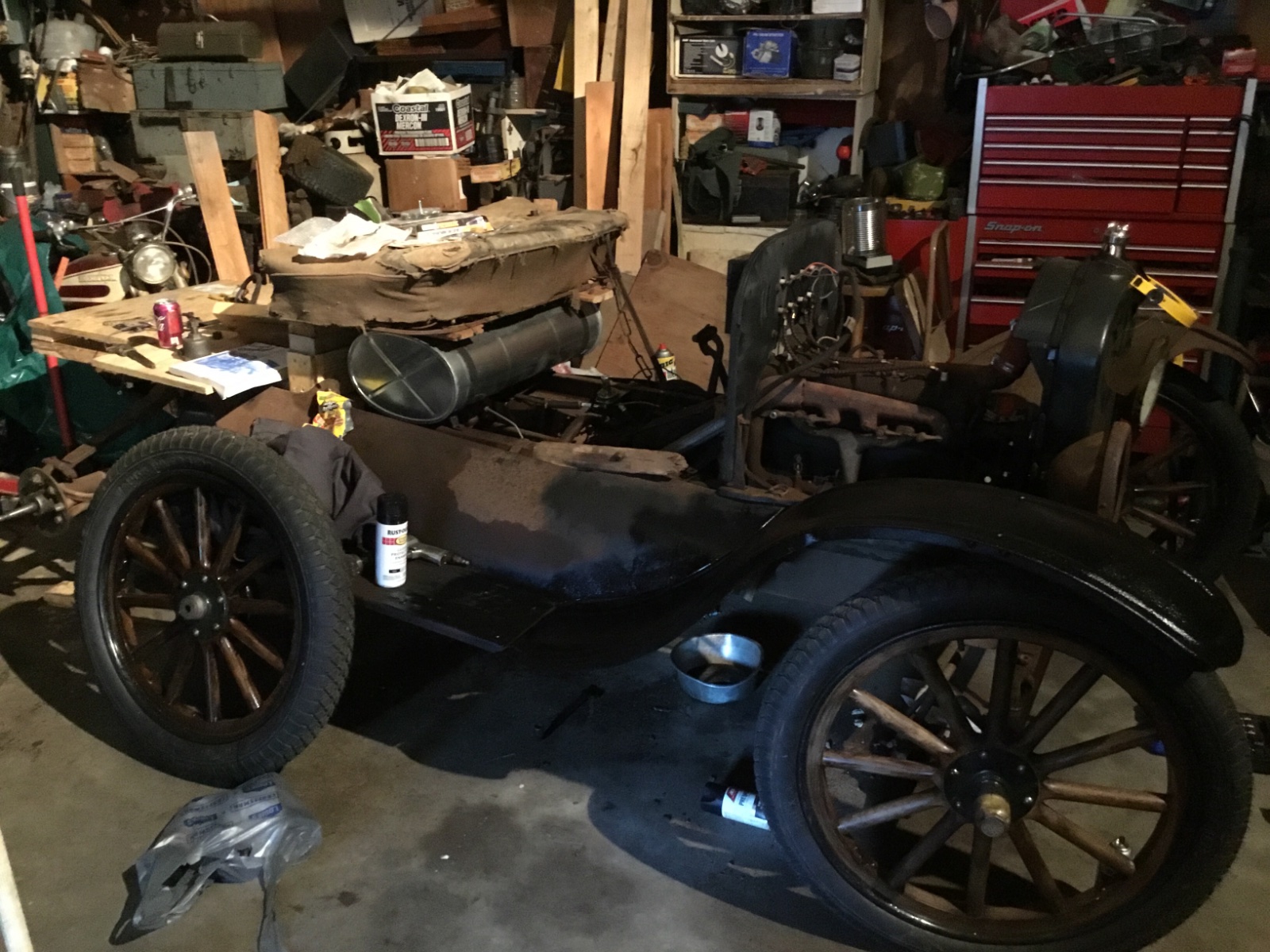 Well, this is it when we pulled it out of the back of the shop where it sat since I was a little boy. This was last summer thoughDuey_C wrote: ↑Sun Jul 21, 2019 9:52 pm"Shoot, when I found it, the radiator was missing the nut for the driver's side mount, so my great-grandfather fixed it by jamming the post sideways in the frame and hooking the radiator on it."
