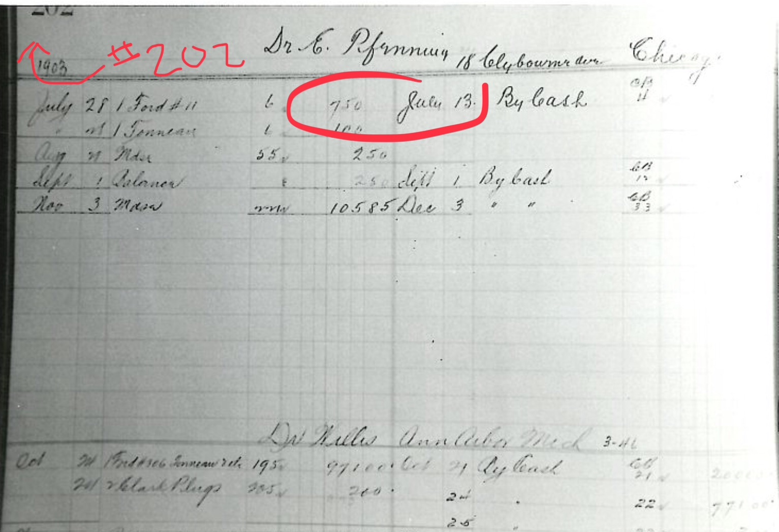 Darels original post was re/ the first Ford sold. Using the info at hand, I’ve asked two accounting professionals their thoughts on those ledger pages. Both agree that the Good Dr Pfenning was the first buyer. Please note, I’m using the limited archival material I’ve seen , and both accountants said if the original running balance sheet or register ( incoming & outgoing) still survives, it would be a good way to confirm that info. My guess is that it has survived because of the many references to the till being down to just a couple hundred bucks when the first sale was made. My opinion,is that was how the original historians came to this same conclusion, but again, just an opinion and guess.