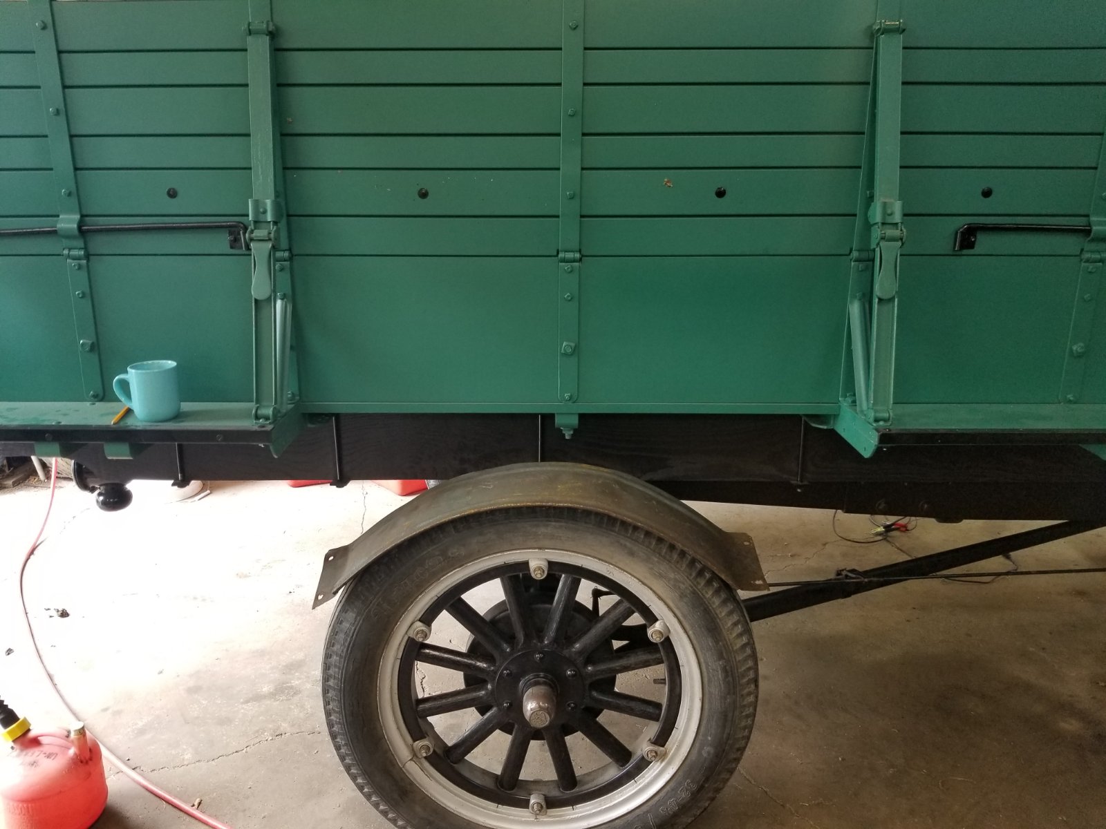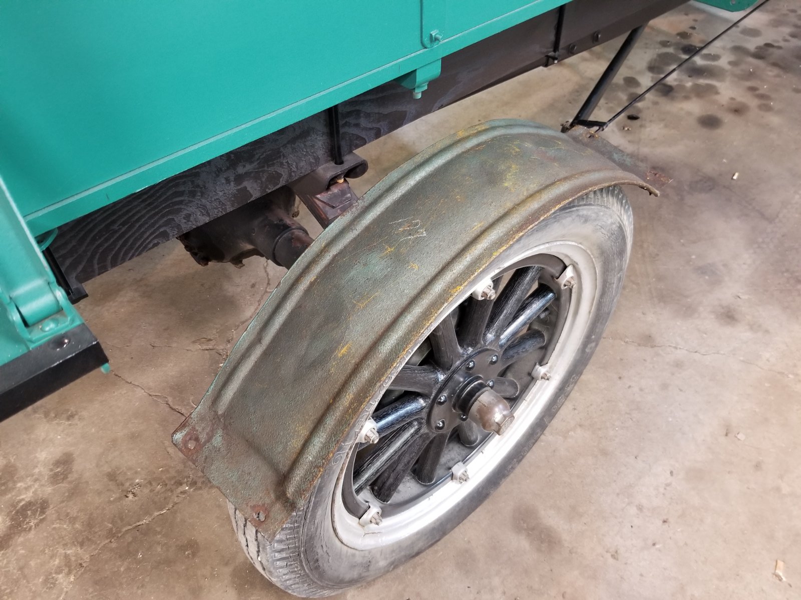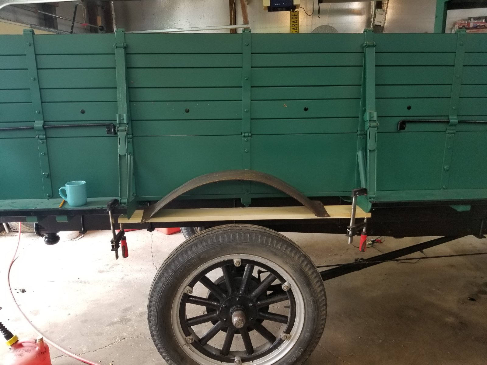 The original wood in the bed had holes for a fender but its long gone. The holes suggest that the fender centered over the wheel. The fender bolted to the bed side and the angle iron fore and aft the opening. There must have been a notch in the top of the fender to clear the flat strap iron for the hinged bed side. Again just guessing. Since the cab is MP and the fender style is almost exact match to the T style beads, I thought I could create something that looked like it belongs there. Since I have no reference to look at and nobody else does, how can I go wrong.