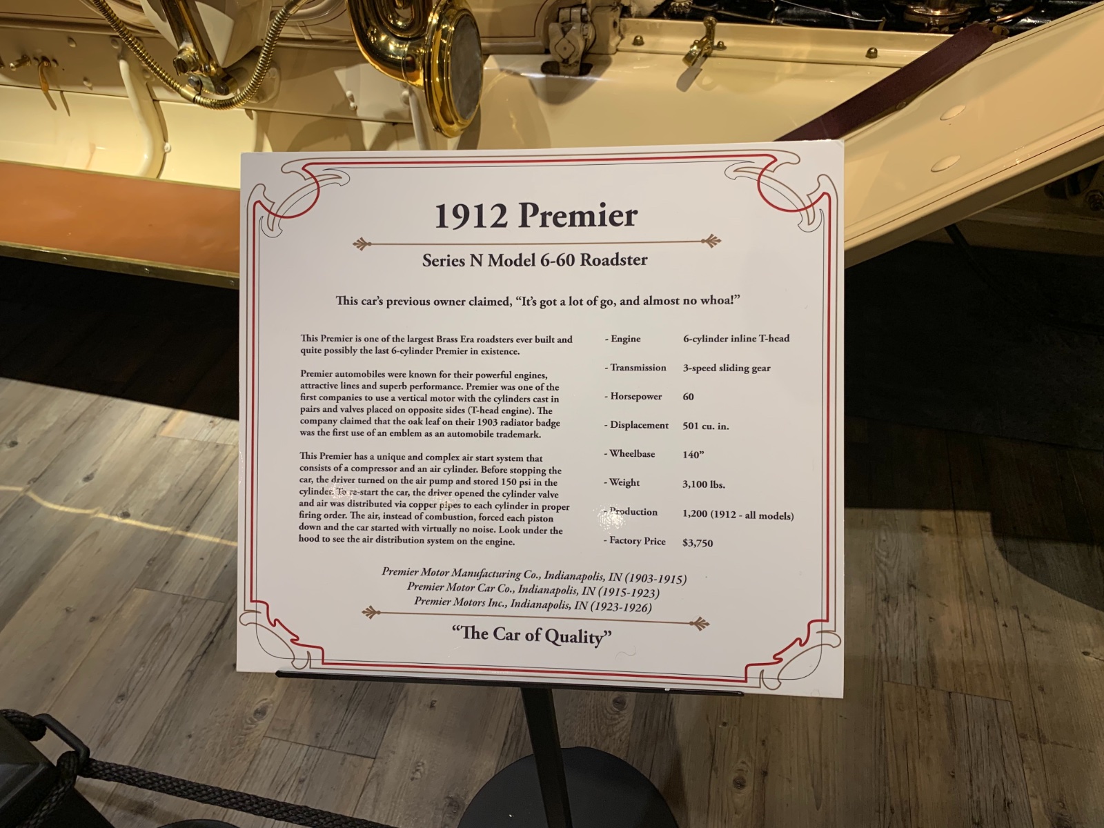 This Premier has a really cool starting system - you pump up a reservoir to 150 PSI and then it has tubing to distribute the pressure to the cylinders to get them moving.
