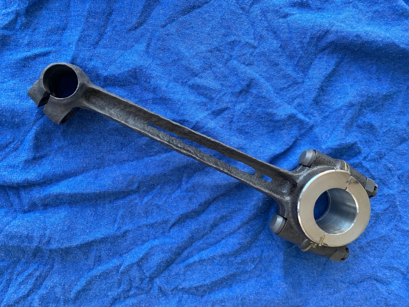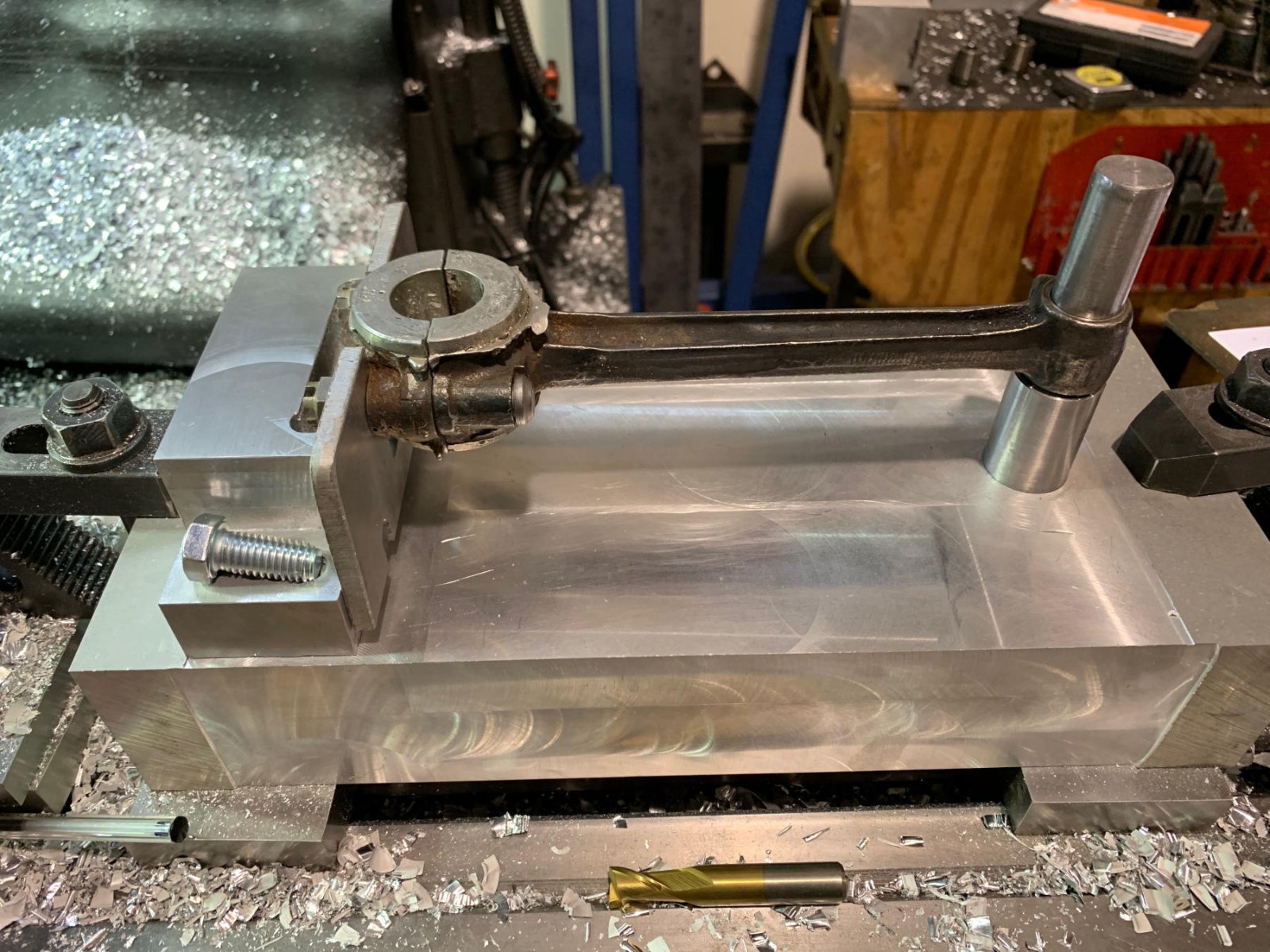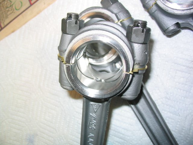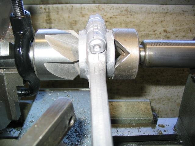 The shaft should have a radius of 1/16 at the rod pins so I cut just a tad over a 1/16. Very nice looking pour, please show us your set up. Also the fixture for boring the rods. Bob 903 824 1949