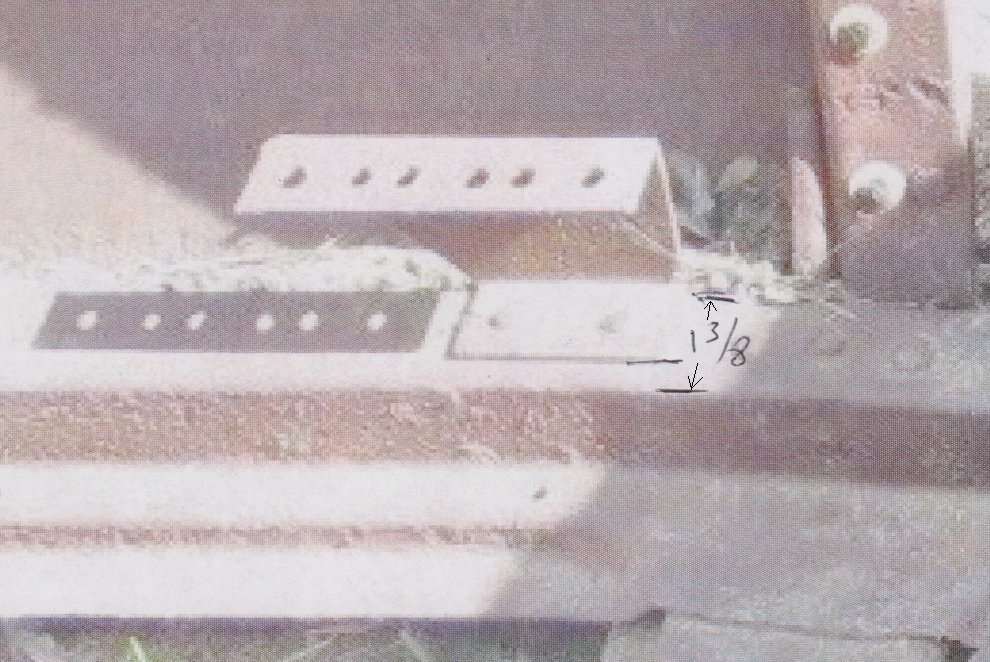 This is the homemade replacement piece. Here is the only original piece and the two I was hammering on today from scrap. The holes were enlarged after this photo. Measurements that I came up with are: 25" long, 1-3/8" face and 5/16" sides. No one makes these.