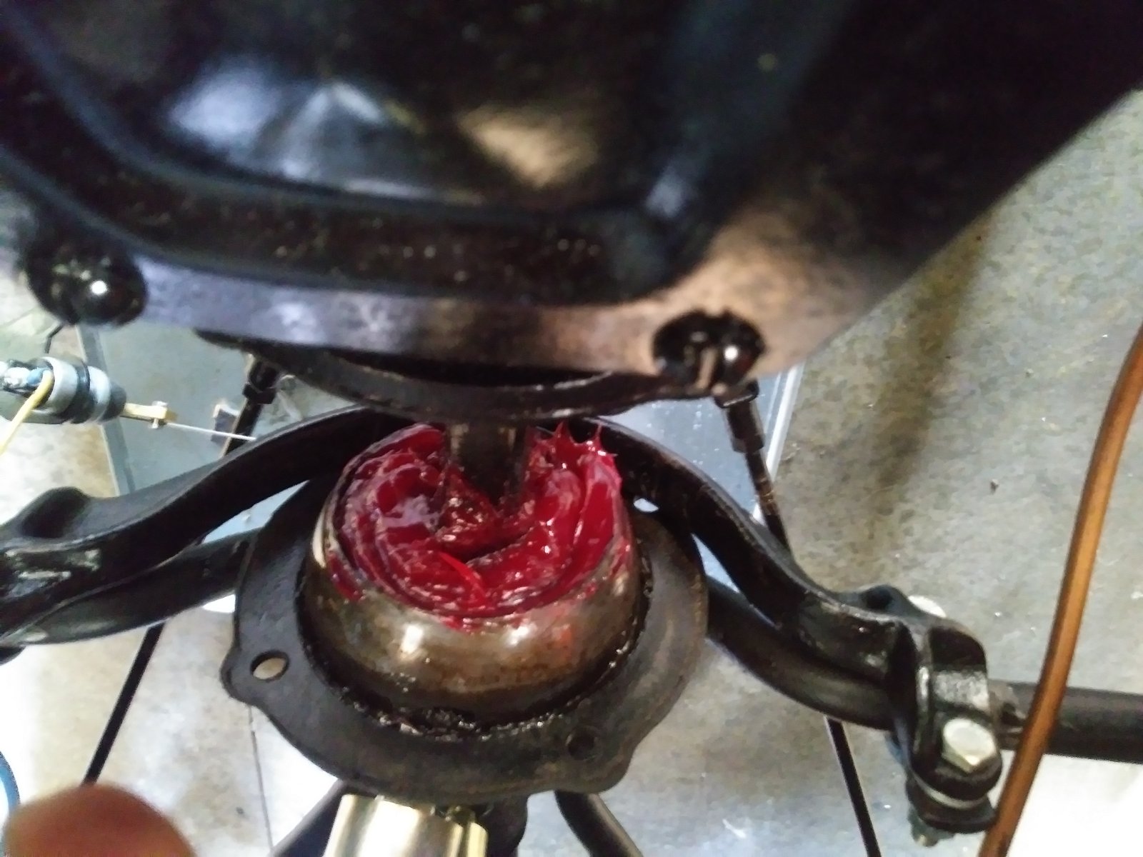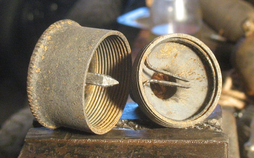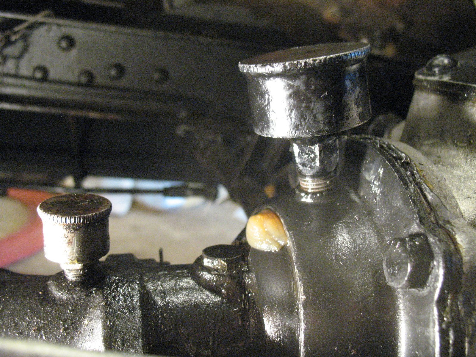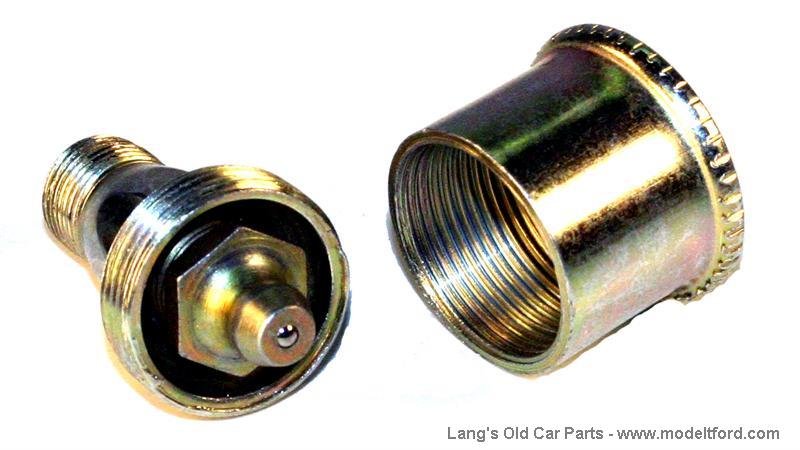 As the regulars on this forum know, I use original parts. The cap has a three or four sided stud which is welded to the cap. There is a spring affair that fits into the base, and when the two are engaged, it prevents the cap from loosening. Of course, if you have a zerk down there, it can't work.