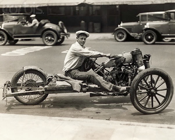 One of my favorite photos is this Indian motorcycle conversion for track use. It shows the ingenuity and genius of tinkerers of that era.