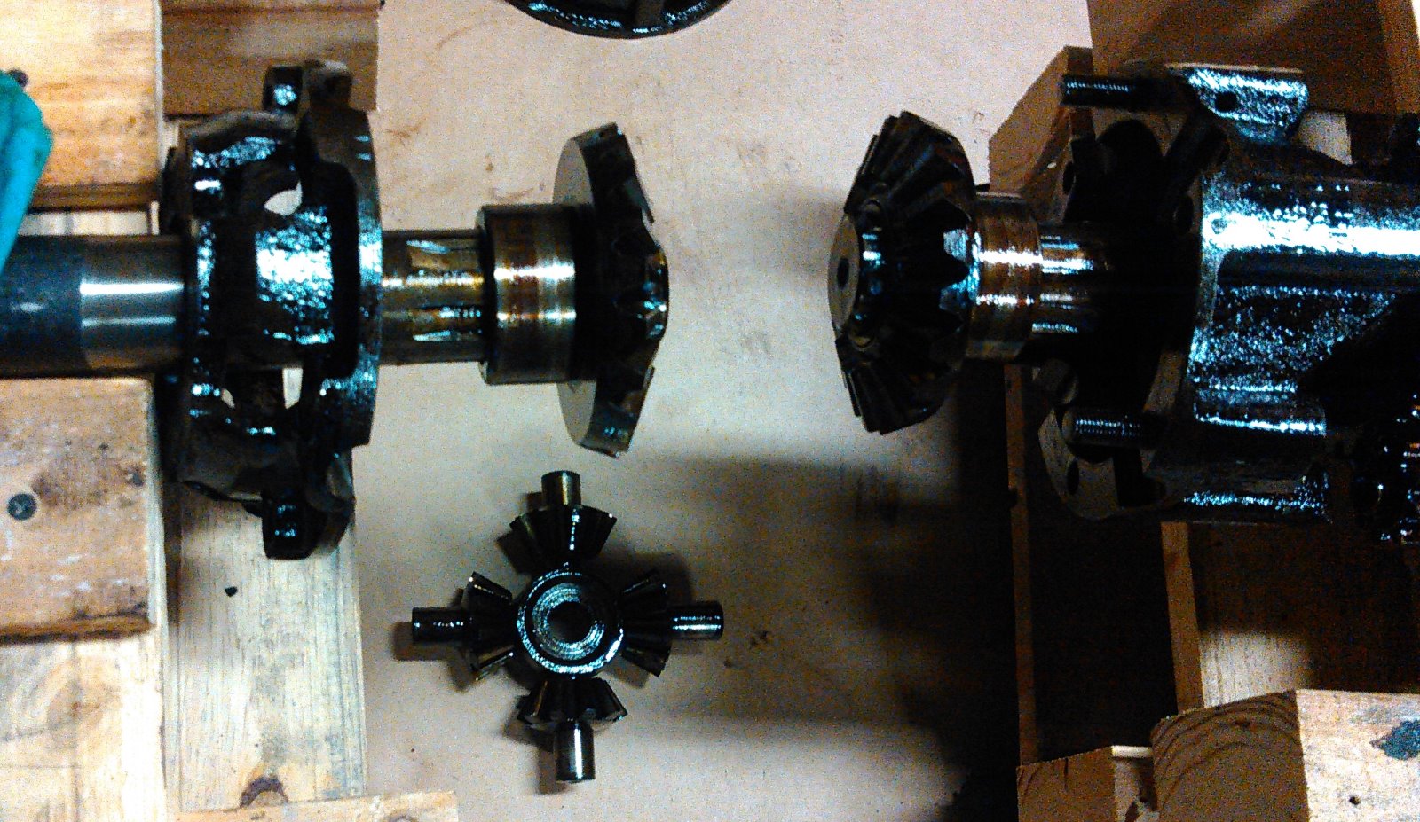 Background: Your photos show a Differential Spider (Part # 1033B) and 4 Differential Pinion Gears (Part # 1032), which are indicative of a later TT. The earlier TT's had a Differential Pinion Shaft (Part # 1033) and 2 Differential Pinion Gears (Part # 1032). To accommodate this the Differential Gear Case in later trucks was machined for the spider (Part # 1028B) as shown in your photos. In earlier trucks the Differential Gear Case was machined for the shaft (Part # 1028). (I know this for a fact because I've had mine apart.)