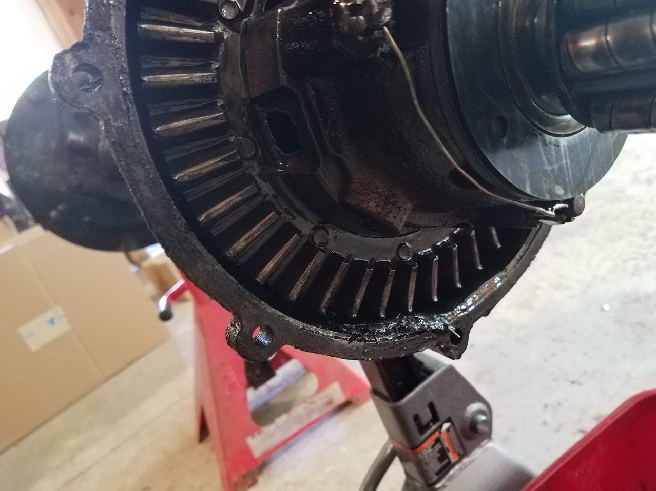 Ring and pinion sets are not available until November. Lone pinion gears not available either. I checked six suppliers. I want to keep with the 3.64 ratio. I thought that I'd nurse this through until then. I also noticed that I don't think that I have any thrust disk pins. All sheared off.