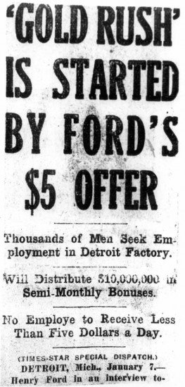 This past Saturday marked the 105th anniversary of Ford's $5.00 per day wage...