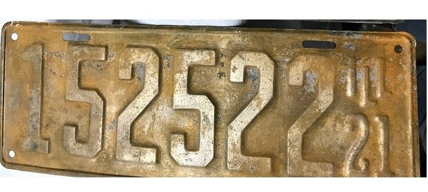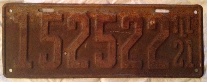 I'm in the process of refurbishing as set of 1921 IL plates. First what they looked like on EBAY (I zoomed in and they looked solid) Placed them in a bath of RustRestorer (KrudKutter brand) then brushed of the residue black residue.