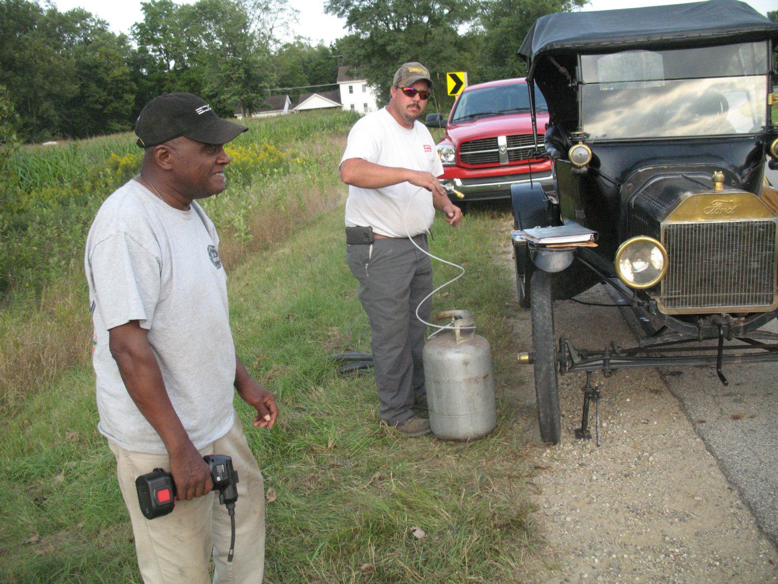 Yes, I took the coils to the Henry Ford Model T shop for adjusting and a point replacement. One of them has a bad capacitor, which left me with no spare, so one of the guys at OCF gave me one. I've always resisted buying a tester because I didn't think I'd use it enough to justify the expense, but now I'm thinking it will be on my shopping list for this winter. I have a bunch of coils in my shop I should recondition. After coil adjustment and another check of timing, the car was almost back to normal, close enough for me not to worry about it until I get home. Coming back to Wayne last night, a distance of about six miles, the car ran very well. With the new timer I do have to keep an eye on the spark lever. If I don't it creeps up.