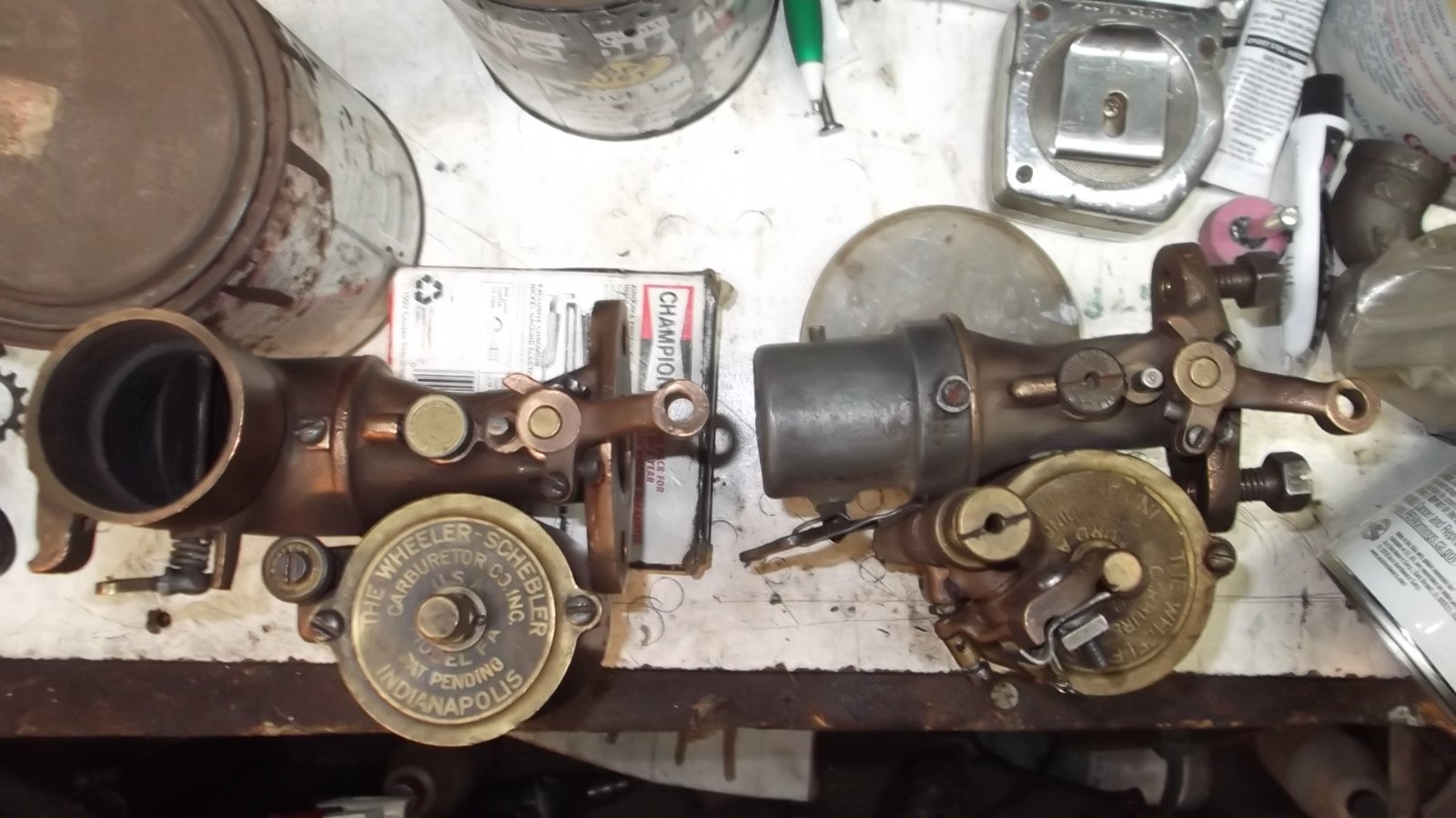 There are the two Wheeler Schebler units I have. One of them was cleaned and adjusted by Stan.