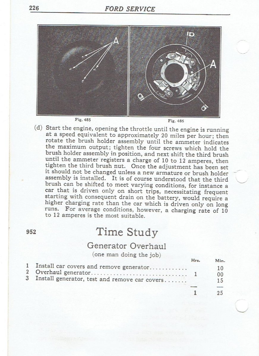 My 1924 stock T Model Coupe's generator (6 volt system) puts out 6-8 amps at regular road speed (30-35 mph). Last week in about 15 mile drive it went from 6-8 amps to the max on the gauge of 20 amps.The volt meter I have on the car went from 7-71/2 volts to almost 10 volt reading. I adjusted on the Third Brush which did not change the out put of 20+Amps or the Voltage reading.