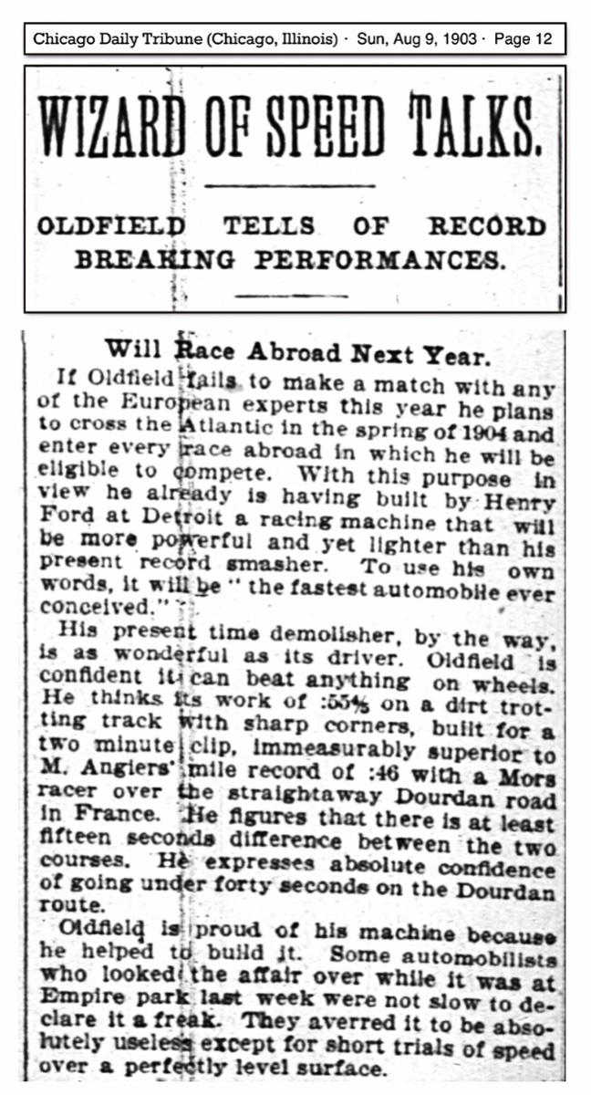 The second paragraph should bring a smile to any Ford enthusiast. A reminder, the Blitzen Benz the Ford had just beaten held the one mile circular track world record at the time: