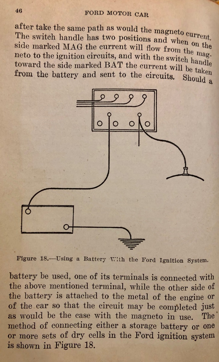 Just because it had a spot for battery on the coil box and switch does not mean it came with one. In fact Ford specifically said it did not need a battery. It's one of those life's conundrums, why it's there if it was not needed.