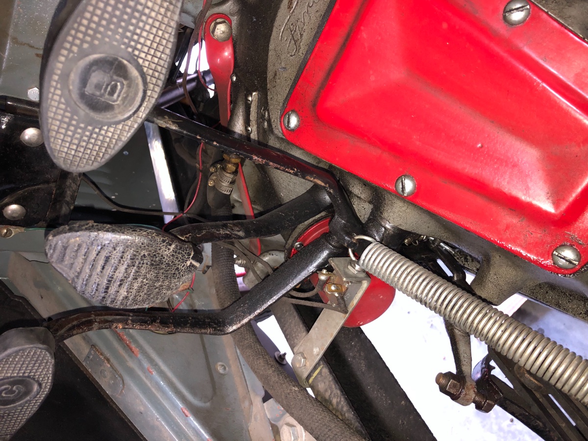 In these photos the rods to the exterior brakes aren’t mounted. And the pedal travel from zero, fully back in the cam, allows for 3” of pedal push until the trans band starts to close on the drum. More push locks the trans brake, so have that trans brake fitted a tad loose for this reason.