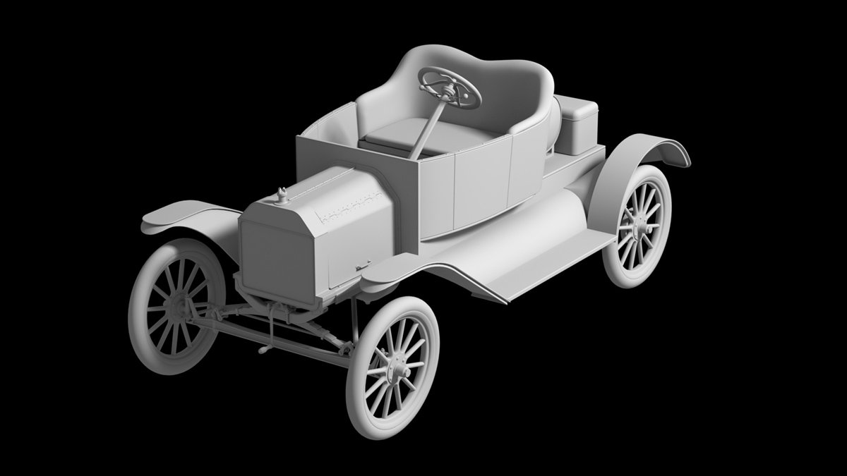 Update. The model is pretty much complete. The brass details (headlamps, side lamps, horn, etc.) were done by eye based on photo references. Headlamps are Jno Brown Model 19, side lamps are Atwood Castle 204. Horn is double twist. From what I've read, there was a lot of variety when it came to these things and no real standards. Next steps are UV mapping and shading. I'm planning to use this set of photos as a guide as the finish appears to be historically correct: https://rmsothebys.com/en/auctions/pg19 ... out/775098. (With the exception of the dash, which should be painted black inside and out, correct?)