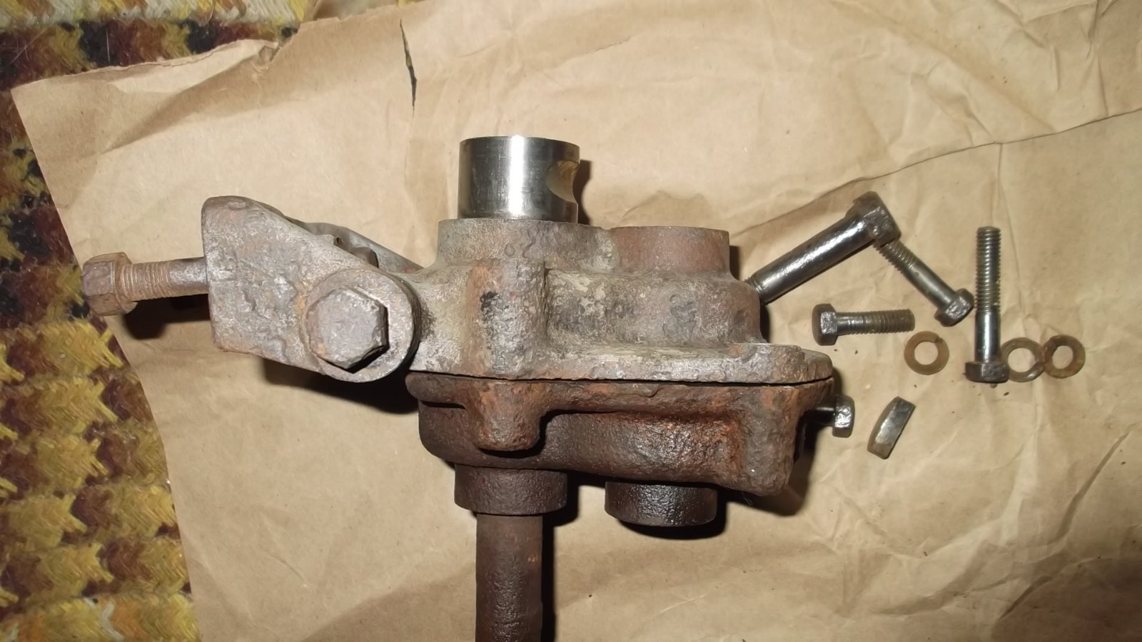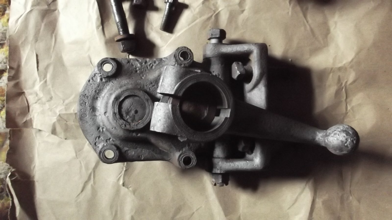 This is ether going on my 21 or? Anyone know what it was off of? Yes it has a Model T spider on it. The lower bracket is adjustable so you can set the box and column at most any angel. The bearing surfaces are a bit worn but the teeth look good. It is a cross swing. The ball needs some loving but looks to be the same size as T.